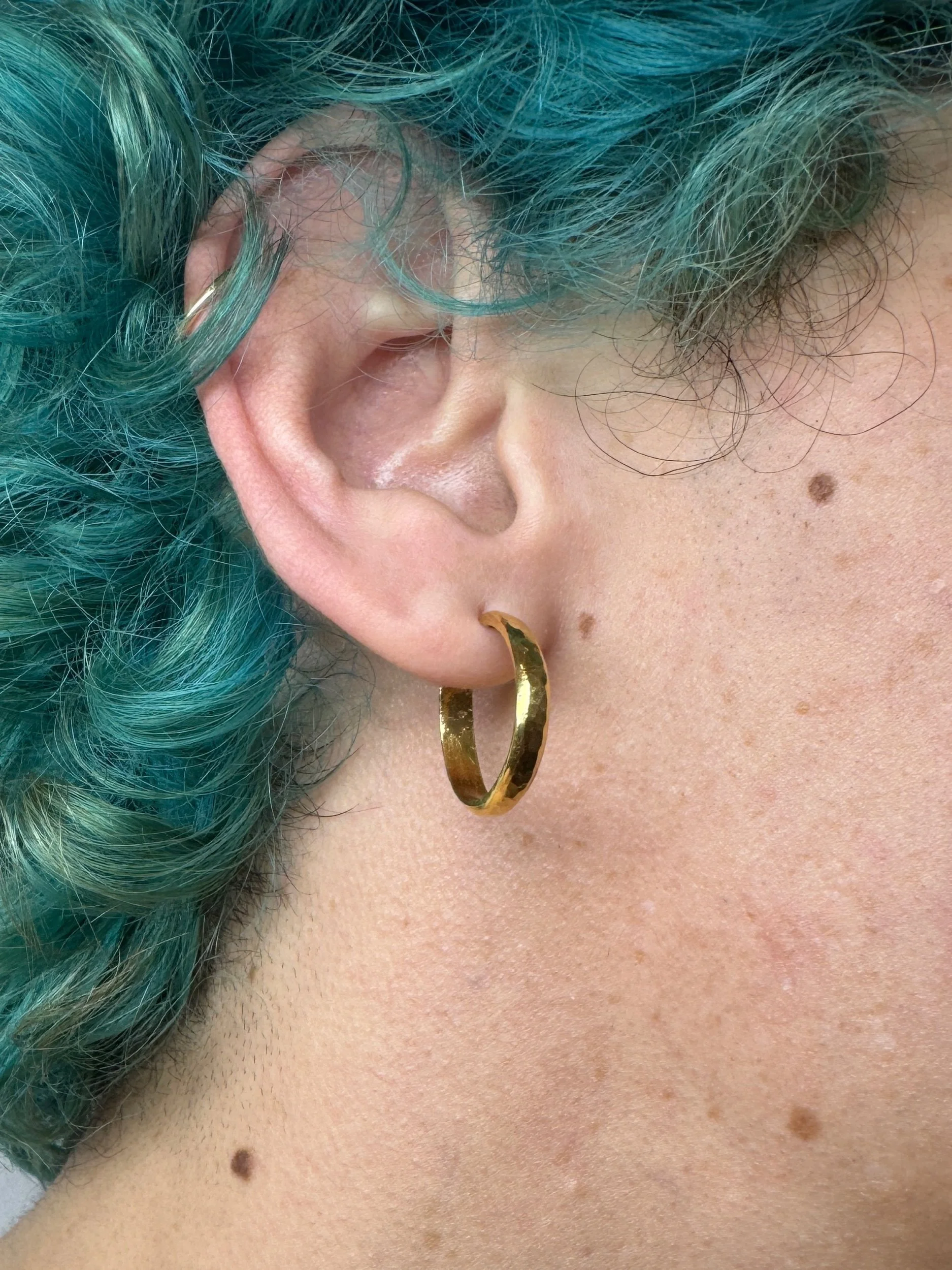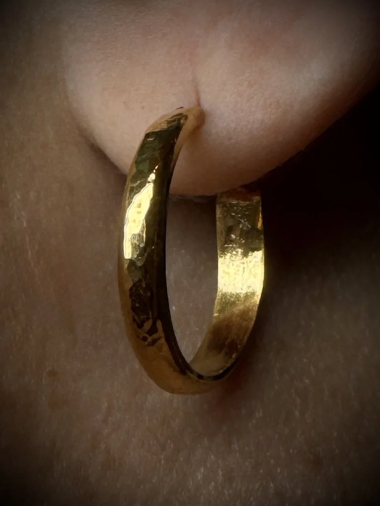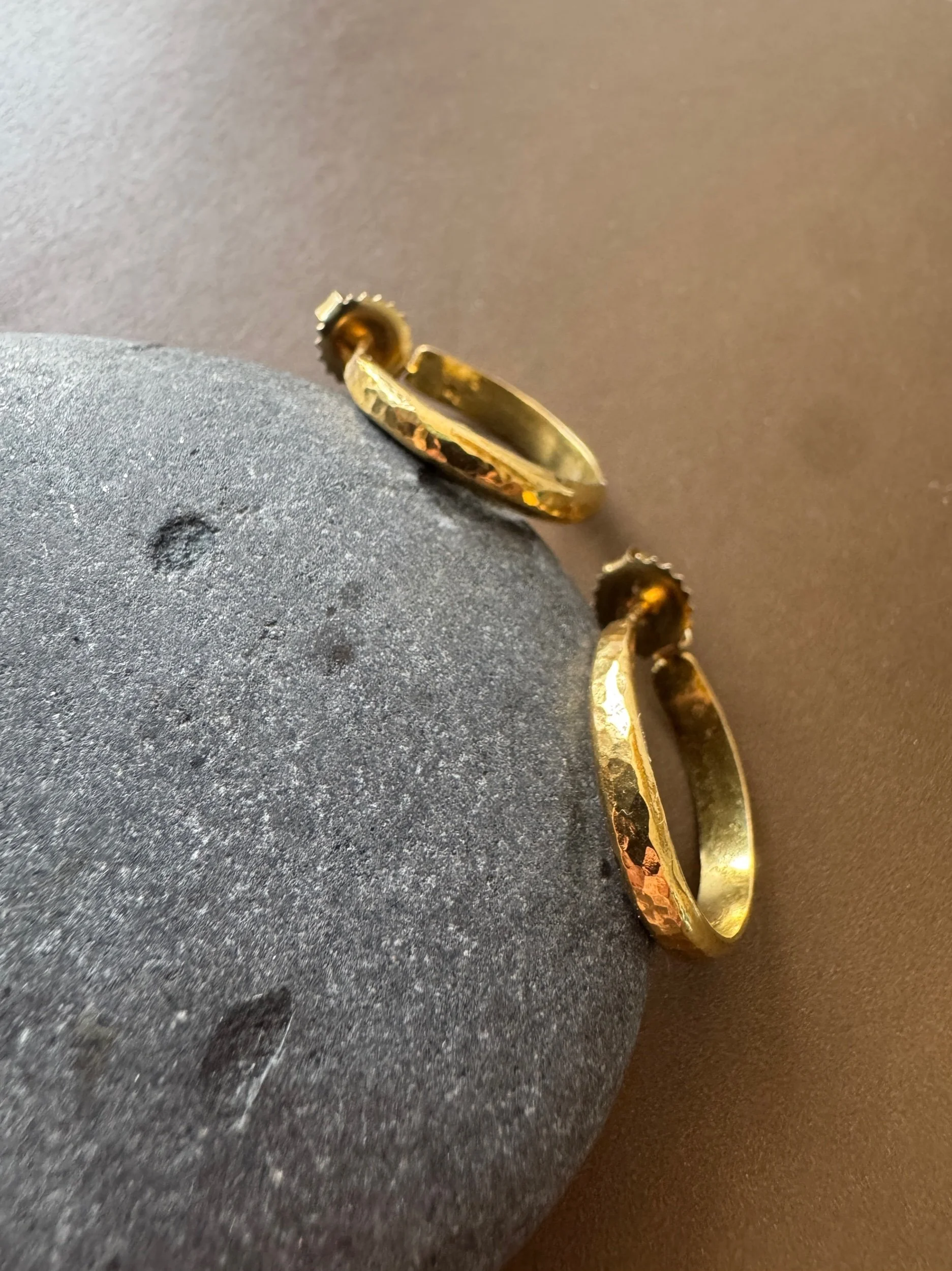 These earrings feature hand hammered texture and buttery 22K Yellow Gold. Details below.